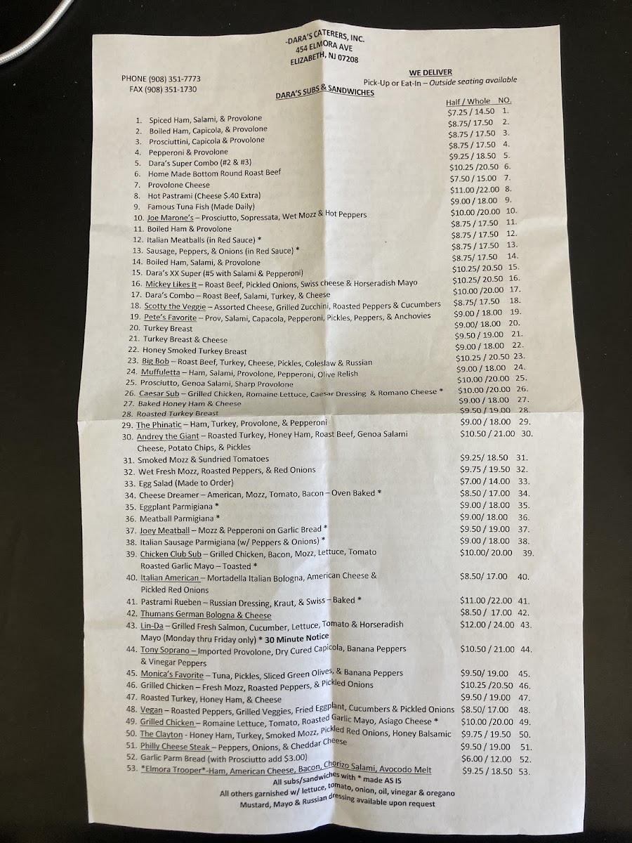 Dara's Caterers Inc offers a straightforward, classic deli menu that feels like a comforting stop in your day. The focus is on hearty sandwiches and simple, satisfying fare, perfect for lunch breaks, casual meals, or whenever a familiar, flavorful bite is called for.